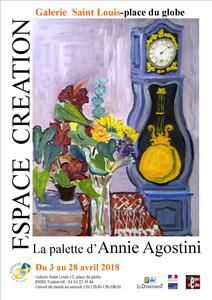 Robert Mendoze à Saint Anastasie Annie Agostini a exposé durant plusieurs années à la galerie St Louis et dans différents lieux dans le Var et en Corse . C’est sa première exposition personnelle à la galerie où elle nous présente une palette colorée, avec force et dynamisme comme lui a enseigné le maître hélas disparu.